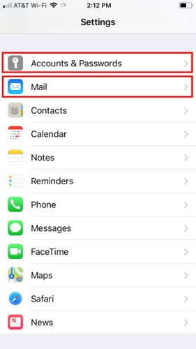 Step 1. To configure a new mailbox, open the Settings screen, click Mail, and Add New Account.