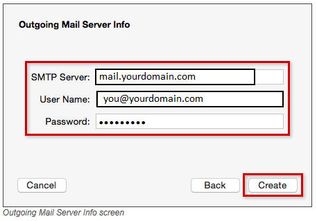 Step 7. Configure the Outgoing Mail Server as follows.  Click the Create button when finished.