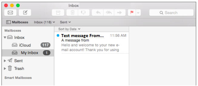 Step 10. Mail will connect to your account and begin downloading your mail to your inbox.